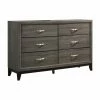 Featuring a design and finish that will never go out of style, the Canyon 6 Drawer Dresser – Grey Oak blends nicely with today’s modern decor. With simple and elegant lines, this gorgeous double dresser features a decorative kick plate and nickel-finished metal knobs on six drawers that have plastic slides and new and improved drawer bottoms made with wood fibers.