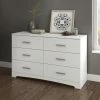 - 6 drawer dresser in white with antique brass finished knobs